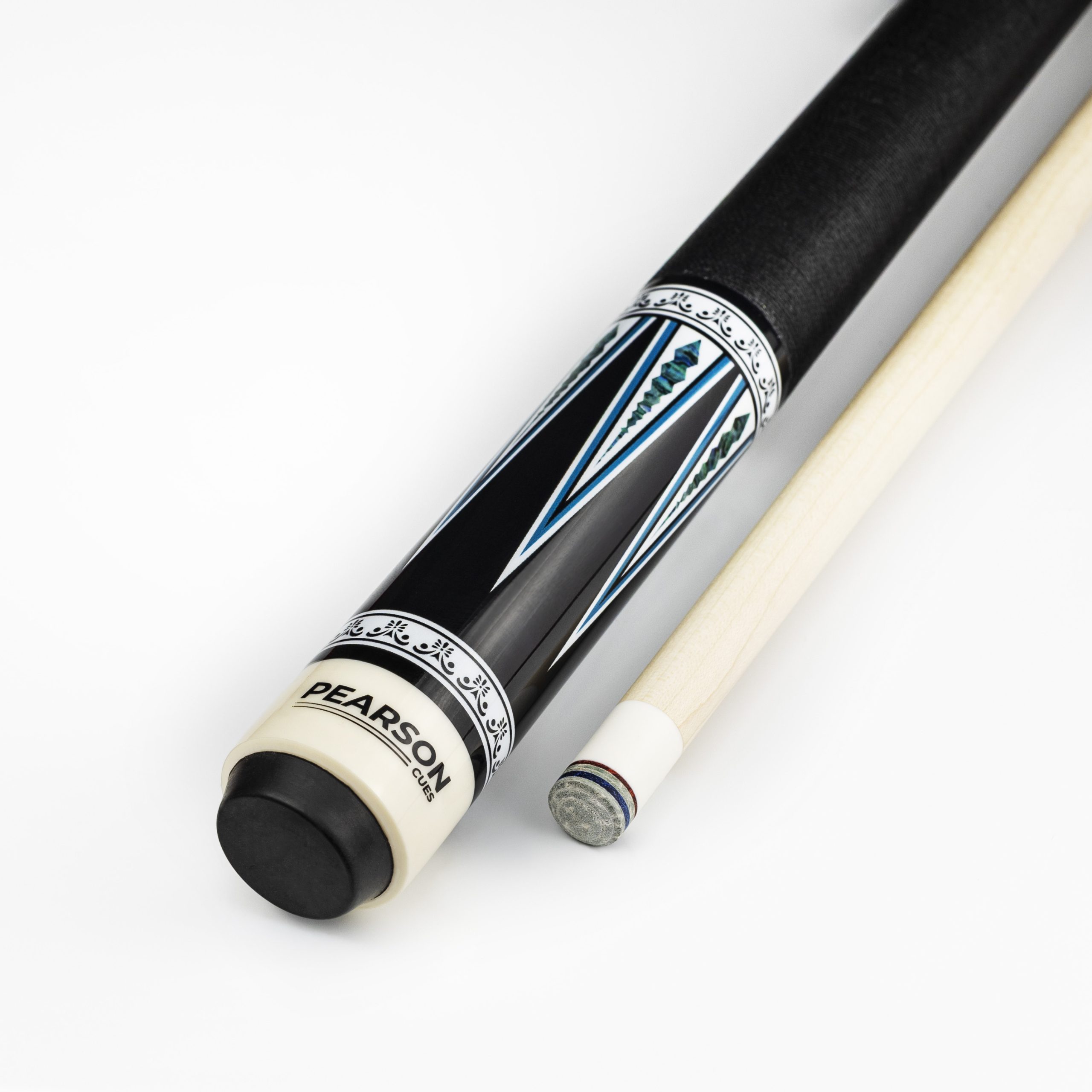 The Pearson RM Cue 3 blends the classic and the modern into one exciting design. Featuring traditional points, inverted (upside-down) points, and eye-catching abalone accents, this cue offers depth, contrast, and visual intrigue from every angle. A unique ring design adds a cool, edgy twist, giving the Pearson RM Cue 3 its own unmistakable personality. Finished with an Irish linen wrap, this cue delivers both standout style and a comfortable, confident grip.