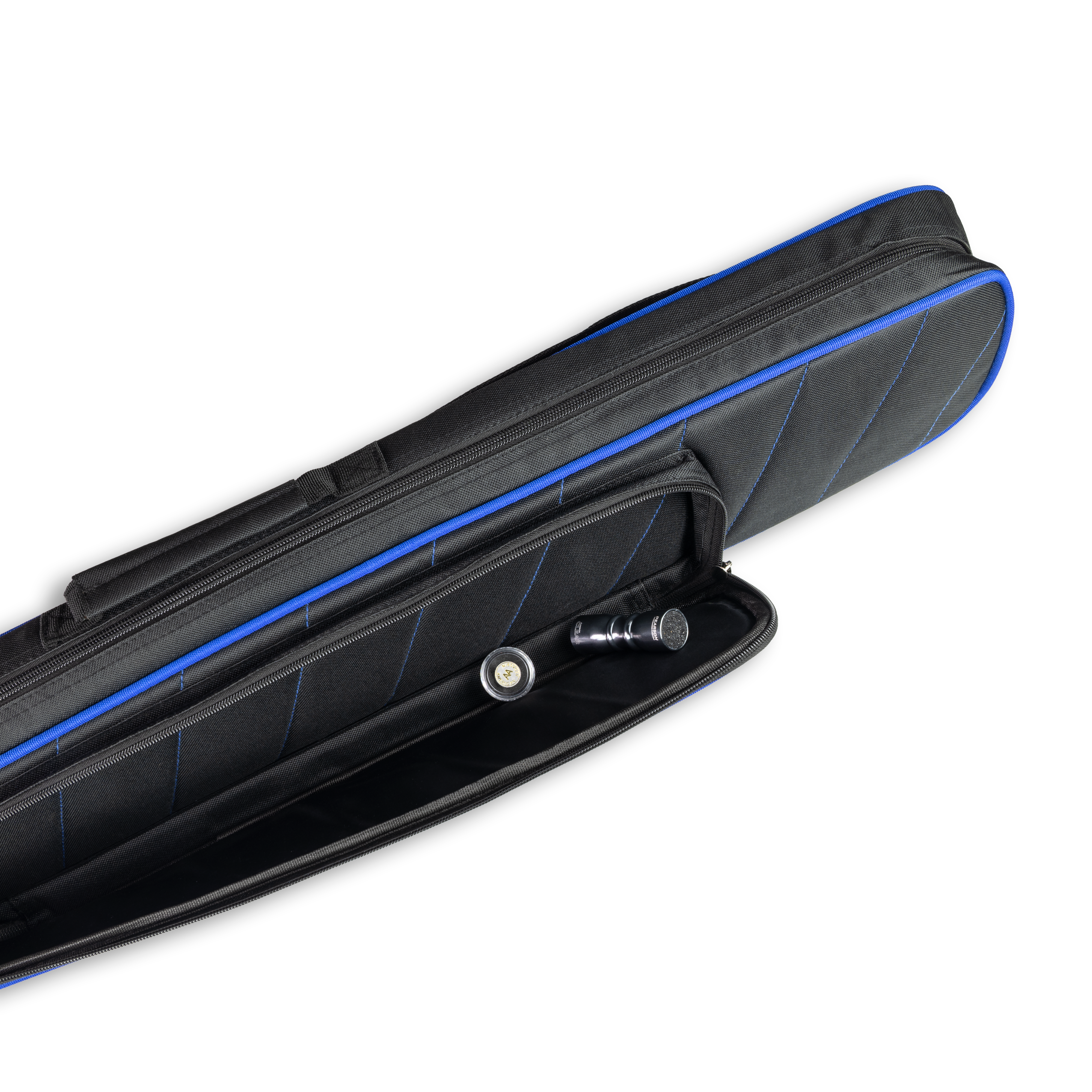 Crafted with a sleek black fabric exterior and a vibrant blue interior, the 3X3 Case Soft combines modern style with ultimate protection for your cues. A thick padded layer safeguards your gear from bumps and scratches, giving you peace of mind wherever you play.