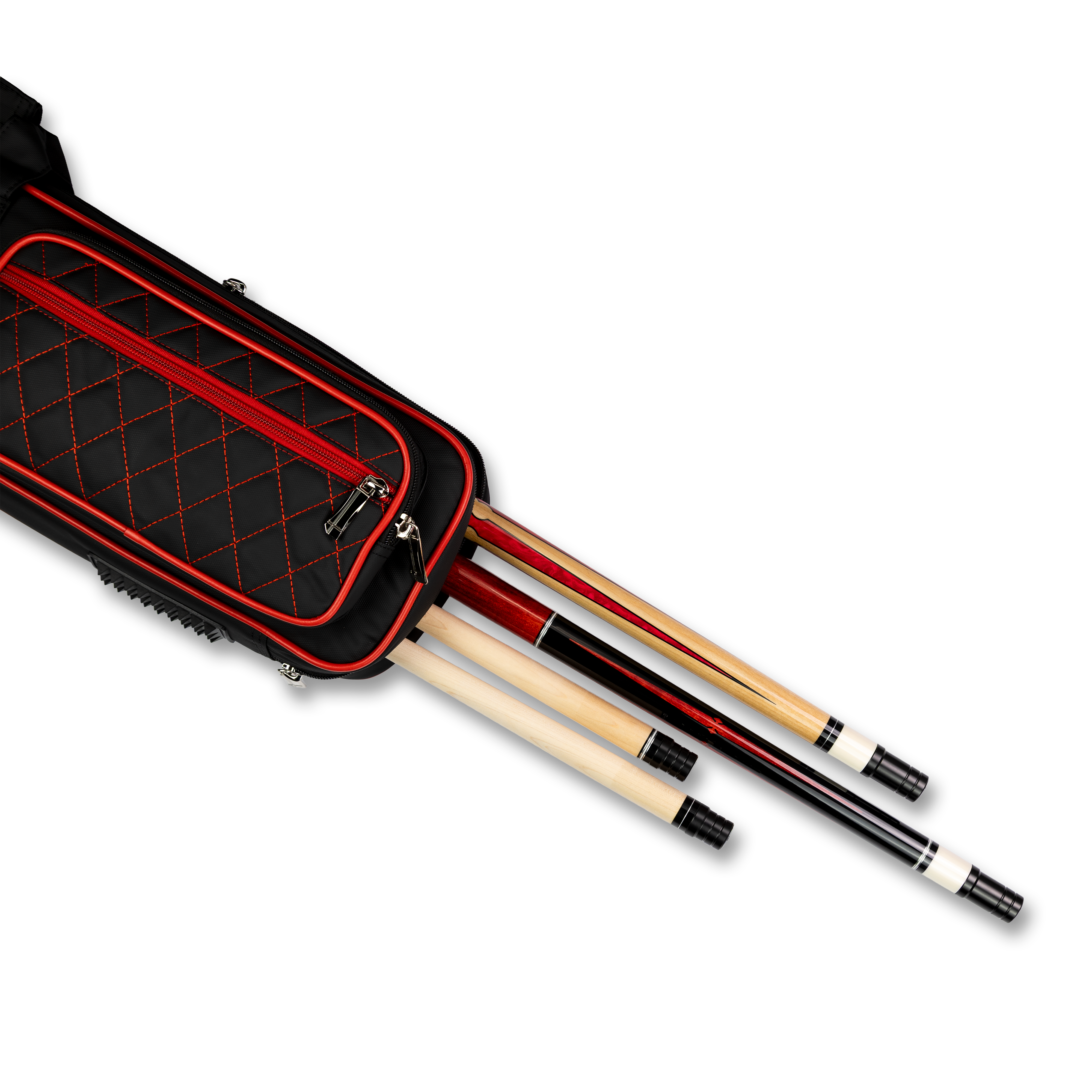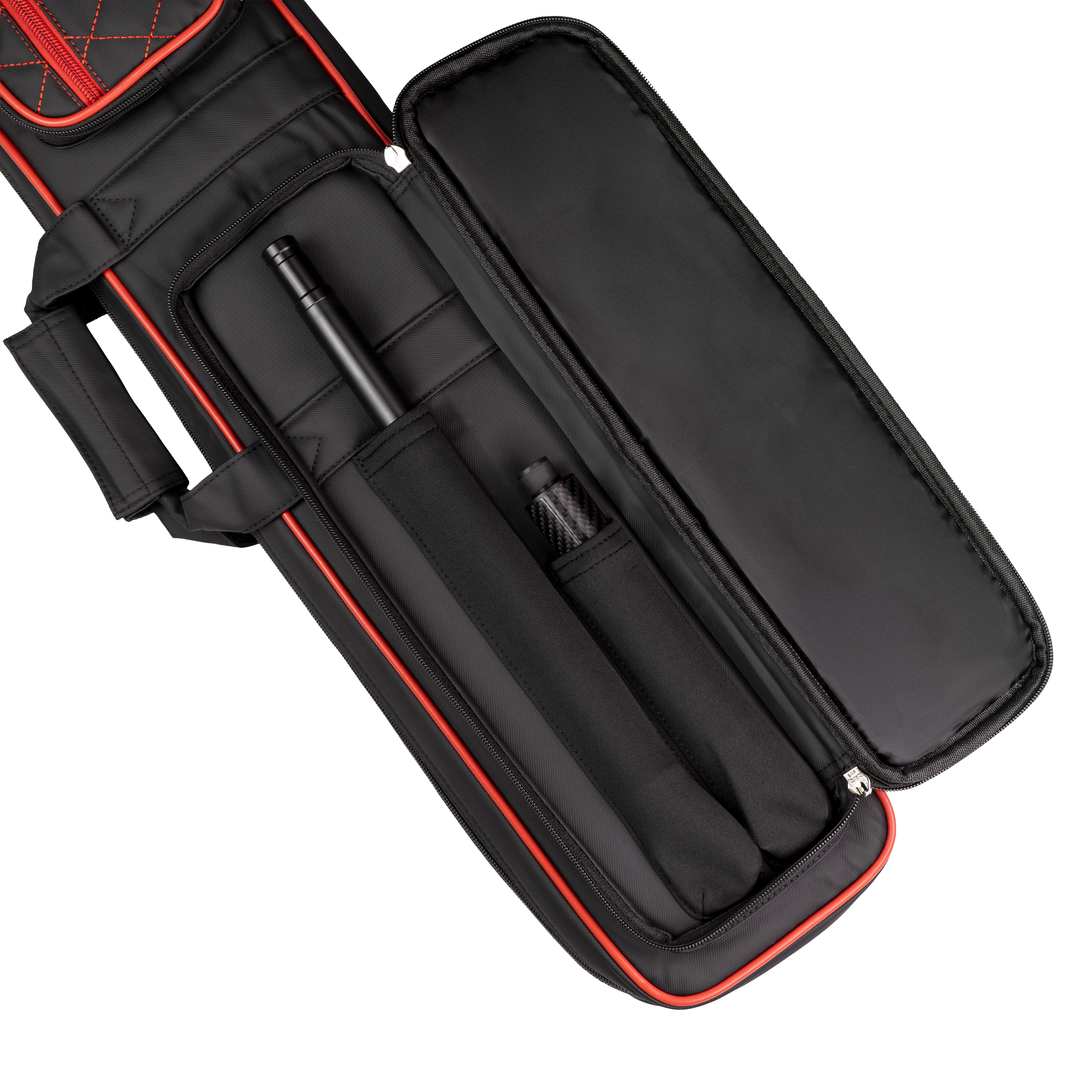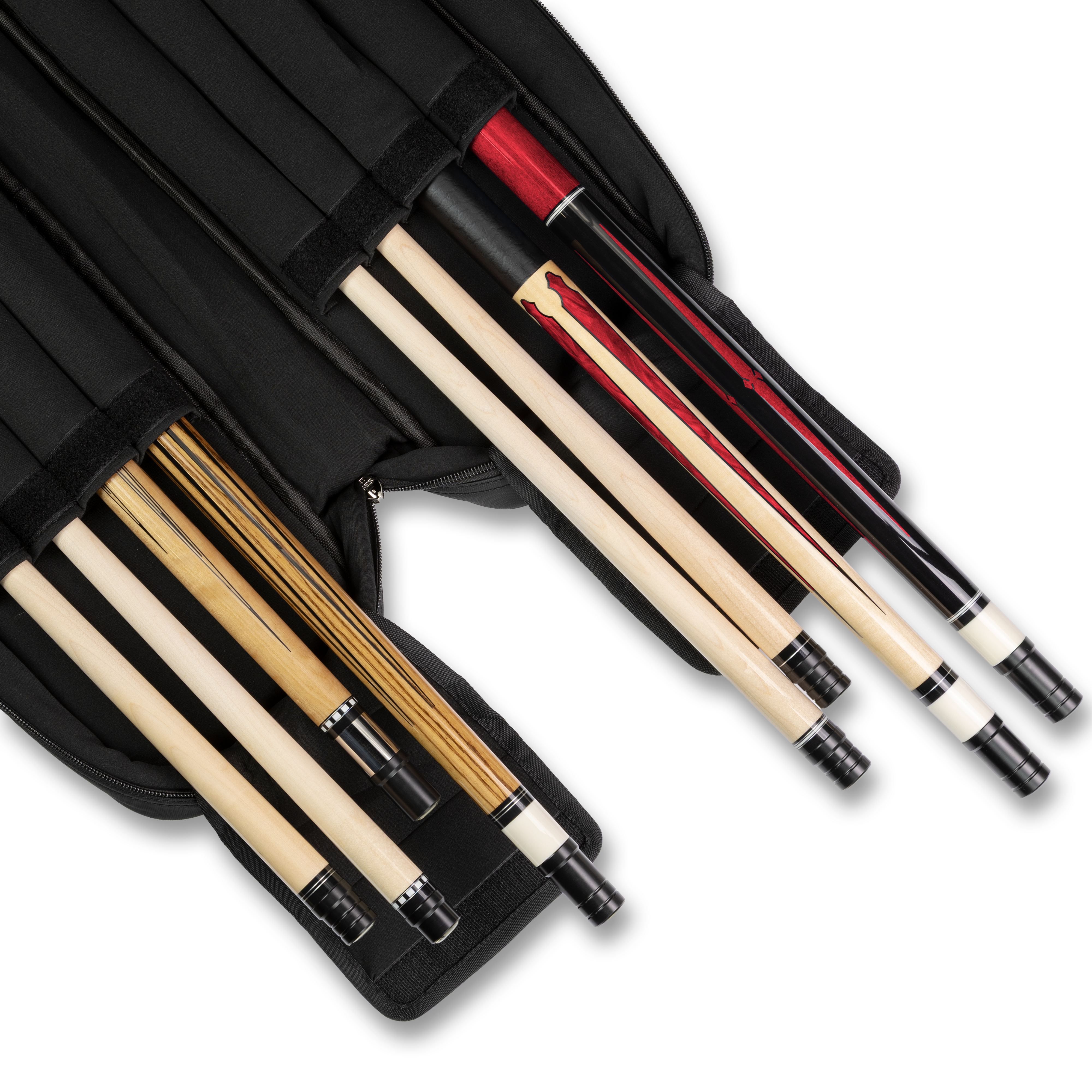 Designed for players who like to stay fully equipped, this case holds 4 butts and 4 full shafts with dedicated pockets for your extension, jump/break cue, and accessories. Carry it your way – using the comfortable padded handle or the backpack strap – while the rubber bottom pads protect the case wherever you set it down.