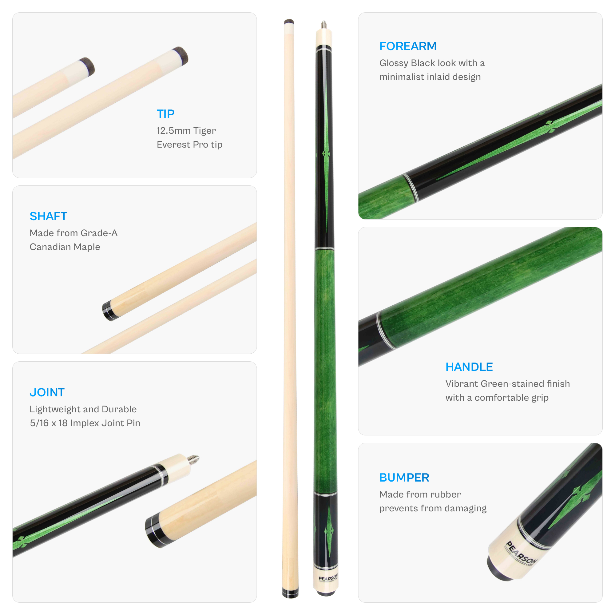 The Pearson Players Series is designed for players seeking a step up in both performance and visual appeal. Each cue in the series features a high-gloss Acrylic finish, delivering a sleek, professional look while providing exceptional durability that resists wear and maintains its smooth appearance over time. Ideal for both casual matches and competitive tournament play, the Pearson® Players Series is built for players who value performance, control, and standout design as they continue to develop their game.Specifications