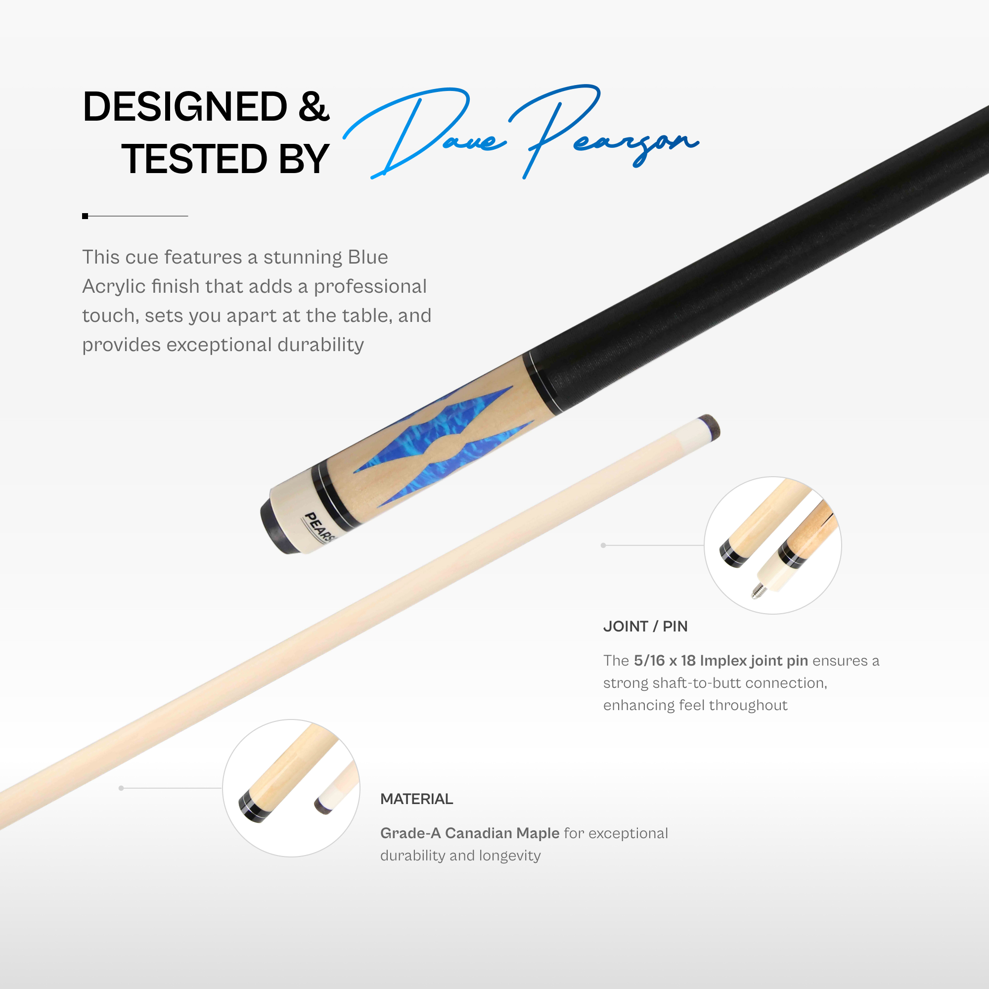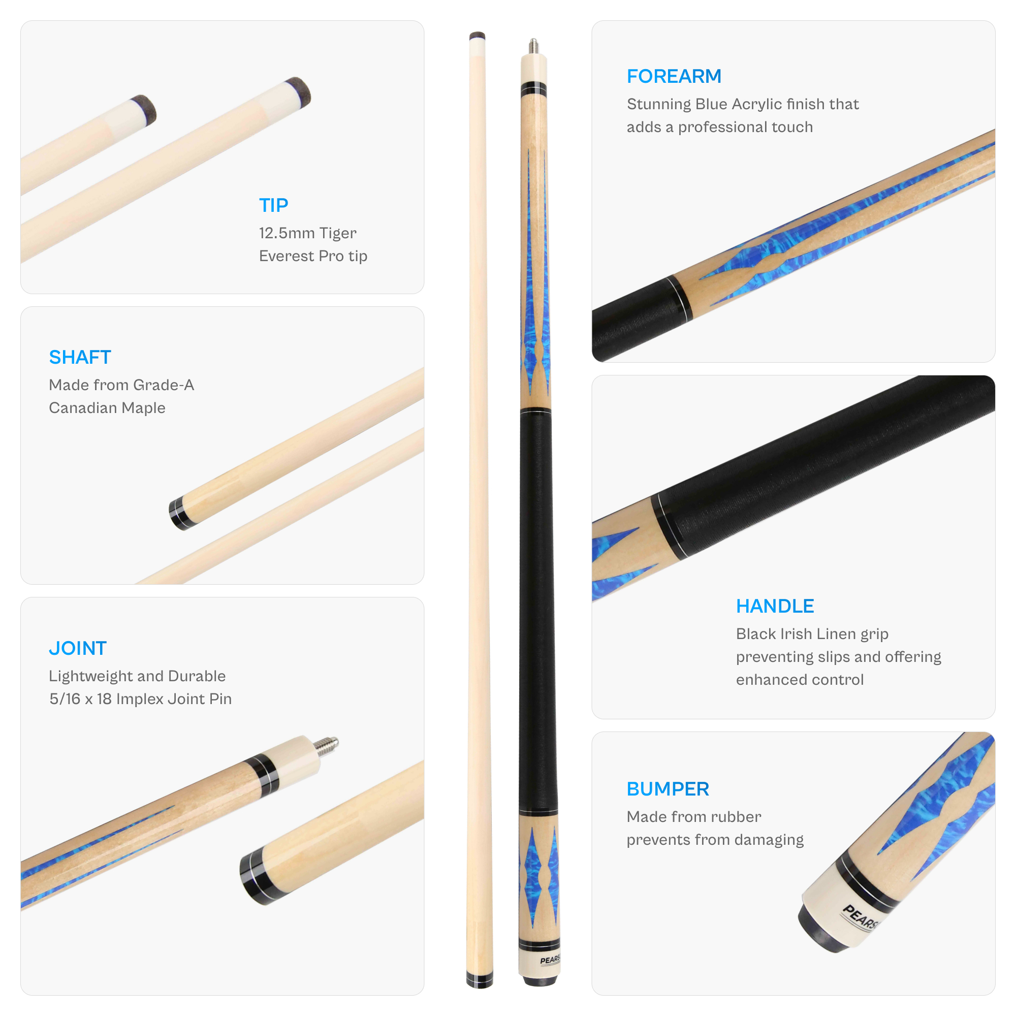 This Players Cue 1 pool cue by Pearson Cues truly represents what a quality billiard cue should be. It has a forearm with Blue Acrylic is finished with professional-grade high gloss lacquer.