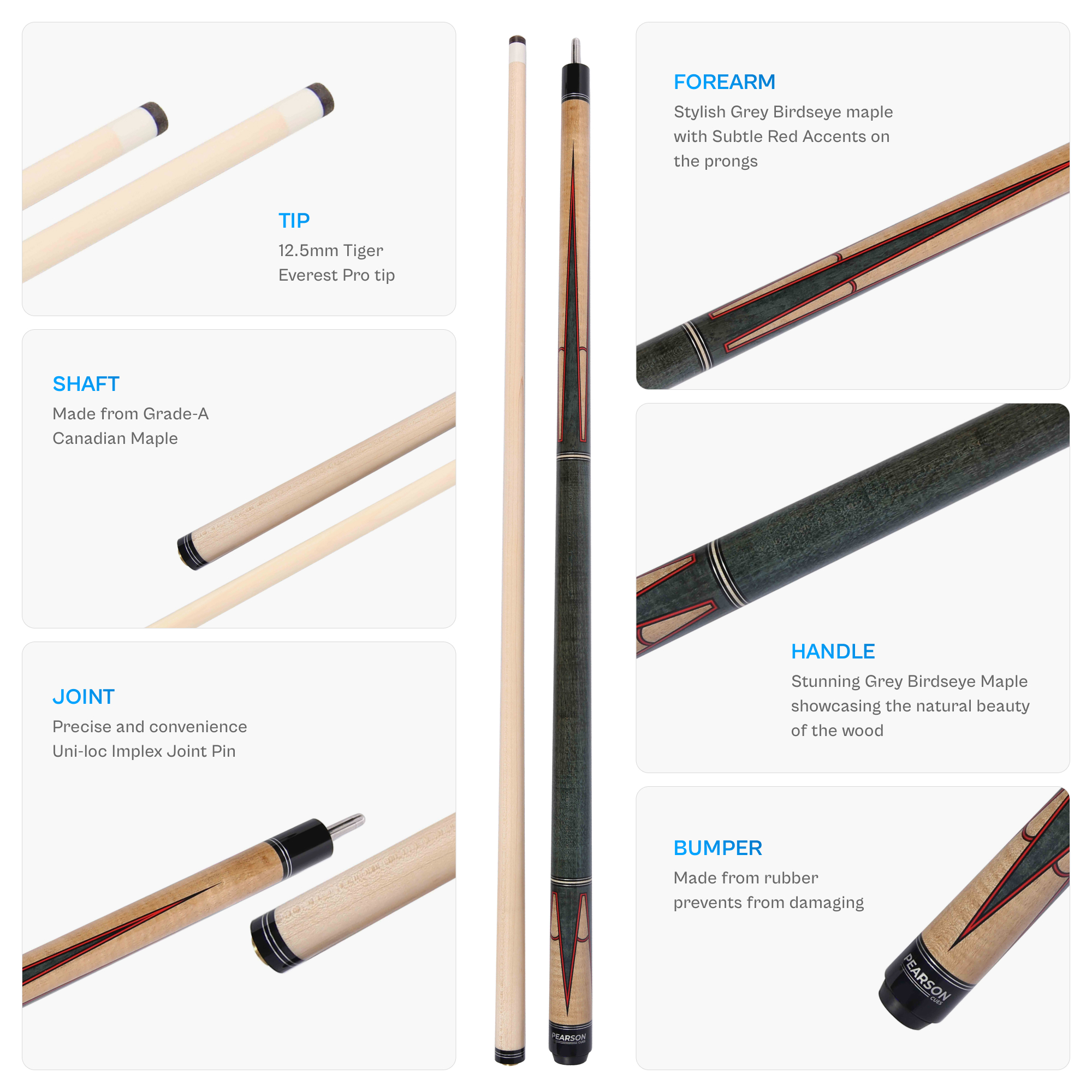 This Pearson Prestige Cue has been carefully designed to look, feel and play like professionals. This Pearson Prestige 2 cue has a style Grey Birdseye maple with subtle red accents on the 4-prong. It has no peer at this price. Be the first to get the Pearson Prestige advantage.