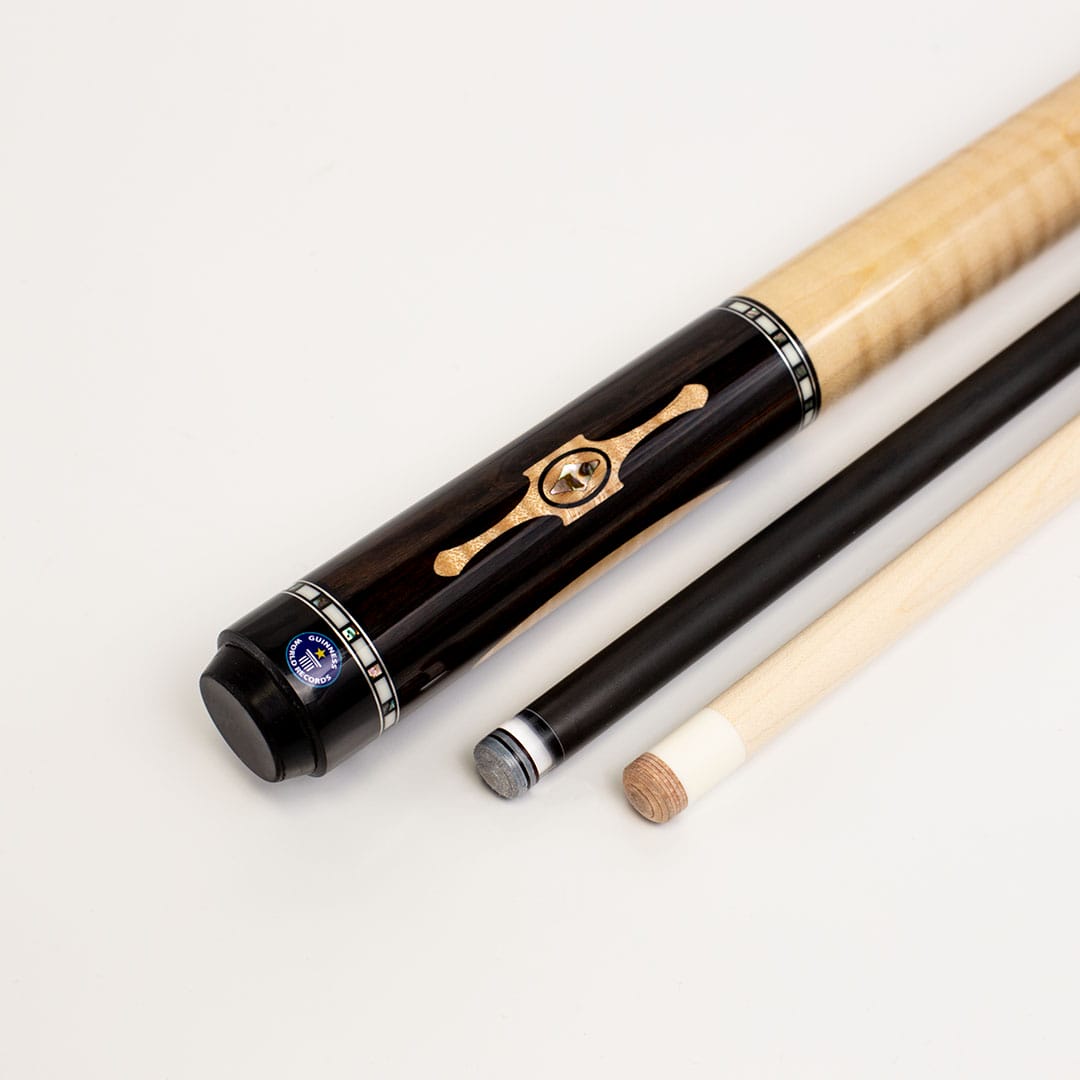 This is your chance to own a very limited edition cue, as only 75 were made of each style, and come with a special authentication certificate, signed by Dave Pearson himself – who also has broken over 20 Guinness World records. This cue has a Black forearm and butt sleeve with inlay, and a Black butt cap ring with the World Records Guinness logo.